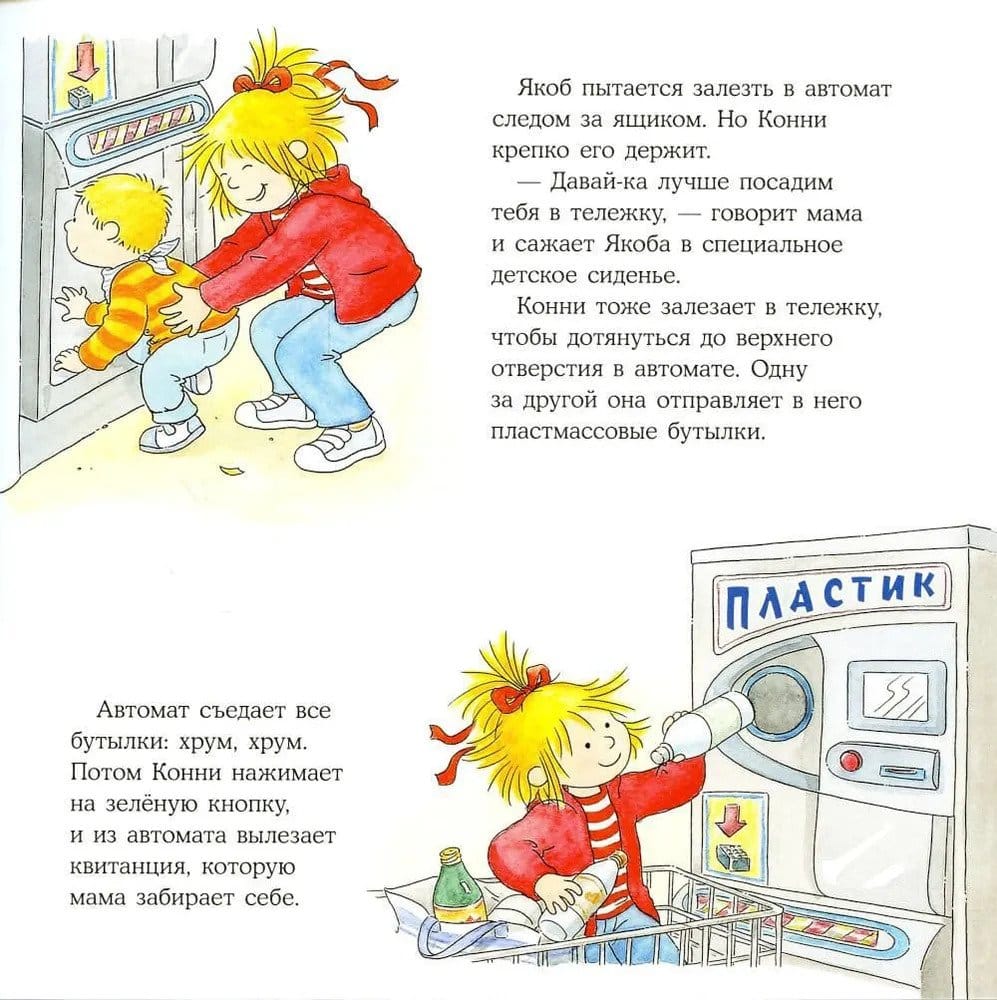 The first shopping trip to the store, going on an excursion without parents, sorting the garbage - everything will become easier, simpler and clearer with the stories from the life of Connie. Together with Connie your little one will find answers to all his questions: how supermarkets are organized, what is the basis of ecology and sorting garbage, how to plan his expenses.