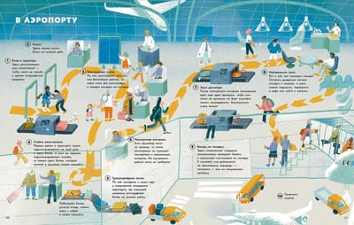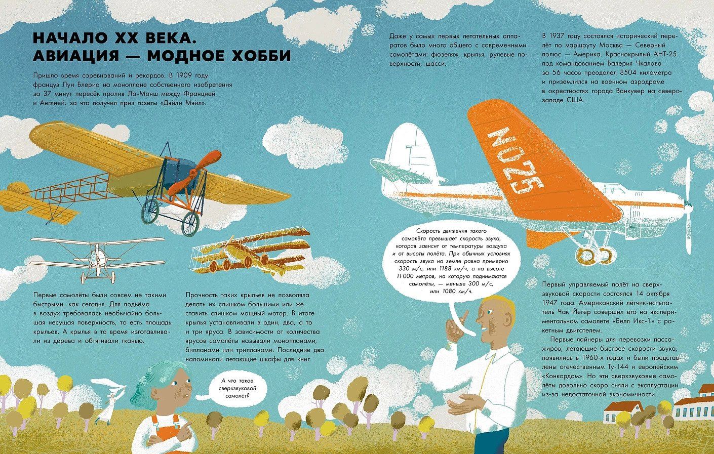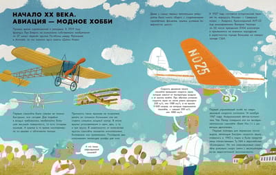 A colorful, educational and very interesting book about passenger planes is our newest addition to the non-fiction shelf. We will tell readers aged 6 and up everything about civil aviation: how people started flying and what the first flights were made on, how modern planes are built and what types there are, how far different planes fly, how such a giant flies and what is in the cockpit. About the crew, fuselage and luggage: this book will answer most of the questions a child might ask about planes, airports and flights, and will also tell interesting facts and show the most unusual airports in the world - each of them is dedicated to a separate beautiful spread.