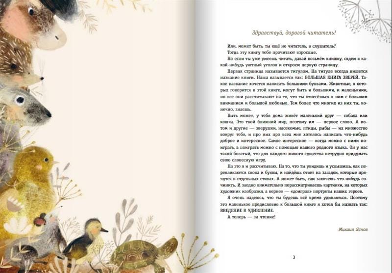 The collection includes 42 amazing poems about cats and dogs, bumblebees and butterflies, gophers and hippos, owls, ducks, piglets and other cute animals. Touching, kind and funny poems for cozy family evenings, leisurely walks and tea parties - stories that have been passed down from generation to generation; bright, warm gold illustrations by Karina Kino, the atmosphere of childhood, which is not to be confused with anything - all this is "The Big Book of Beasts".