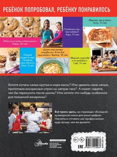 "The Big Cookbook for Young Chefs" is a complete guide for young cooks. It contains more than a hundred recipes, from appetizers and drinks to hot meals for the whole family and delicious desserts. All the recipes in this book have been tried and tested by children from all over the world.
