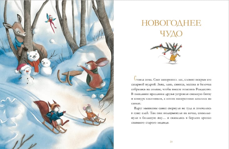 A family of badgers who saved a real miracle, a little mouse who helped an old bear to celebrate the New Year, a pianist cat who made friends with mice, sister marmosets who were helped by friends and even gave a flower among the snow and cold, a rabbit who collected words for travelers and wizards, penguins who know that from the icy ocean you can catch not only fish, but also... love!
