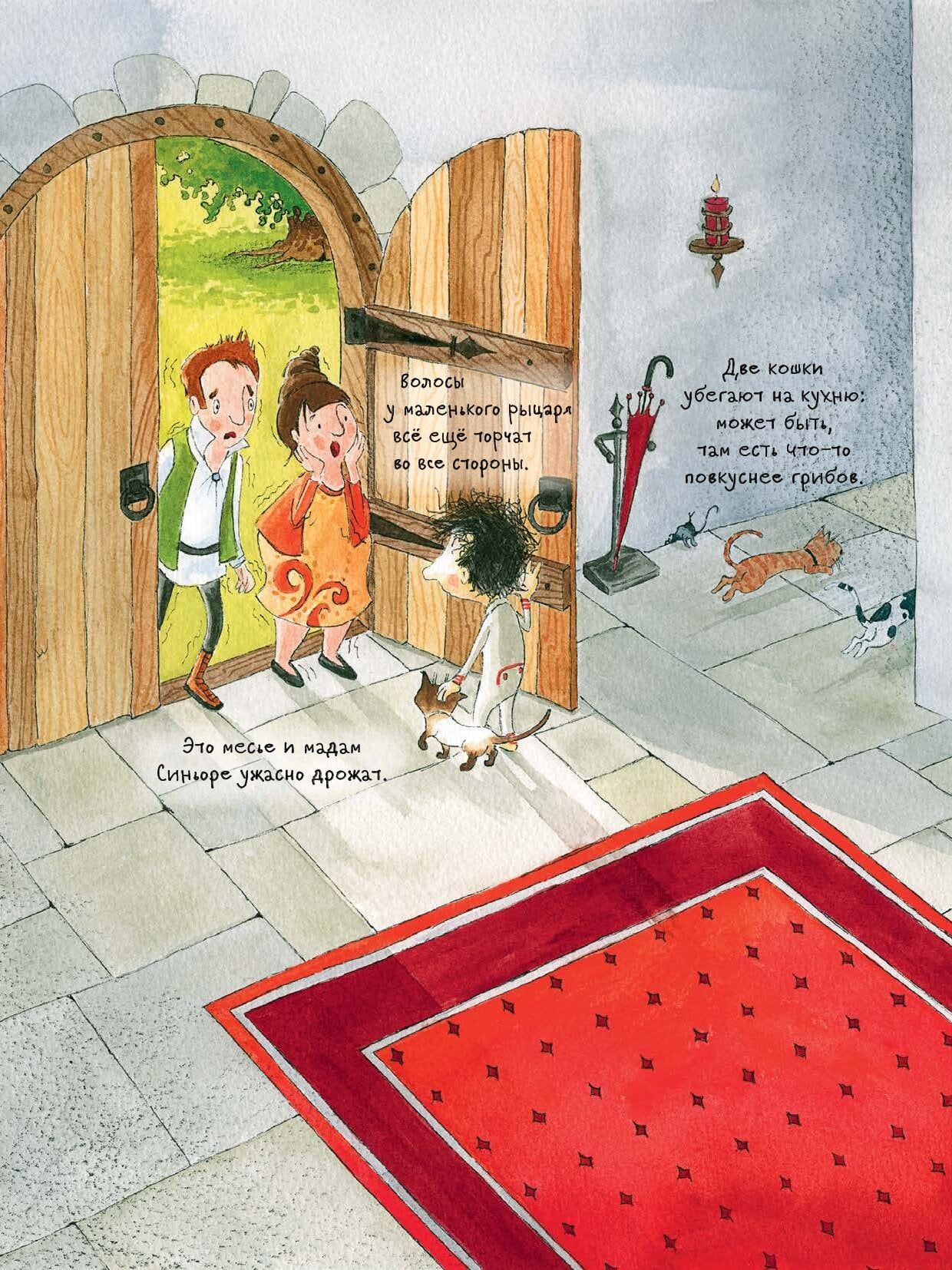 In a small kingdom above the tallest trees lives a little knight who loves cats and chocolate cakes. He reads and waters the plants all day long, and at night he sleeps quietly in his cozy bed. And our brave boy is not afraid of anything, except a thunderstorm, a dragon and a wicked witch. Gathering all his courage, the little knight decides to go to the dark forest to defeat his enemies. But meeting his fears, contrary to all expectations, he welcomes them good-naturedly. "The Little Knight's Big Book of Adventures" is a fun compilation including 3 stories, "The Little Knight Who Fought the Bad Weather", "The Little Knight Who Fought the Dragon", and "The Little Knight Who Fought the Monsters". For children under 3 years old.