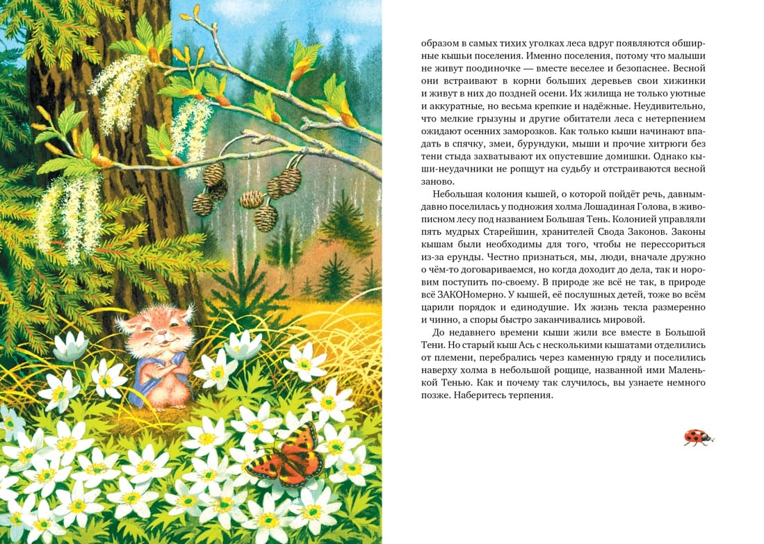 You haven't heard about kishas yet? Probably because they build their houses in the forest wilderness, far away from human eyes... And do you want to know how to tame the Lightning Queen, raise a pet crow, and why you can't put laughter on a Christmas tree? And about the exploits of the twins, the battle with bears, the great destiny of the philosopher Syapa? Or the story of how the naughty Biaka became Big Shoo? If you don't know anything about shooshes, you can only be envious, because you have unforgettable meetings with these magical creatures ahead of you! "Big Kysh" by Mila Blinova - a real Big Tale, of those that are loved by adults and children - funny, touching and clever. This amazing, full of exciting adventures story about small furry creatures has long been one of the favorite books of childhood, on a par with Tove Jansson's Mummy Trolls. And many beautiful color illustrations by Sergei Bordyug make it a wonderful gift for young readers.