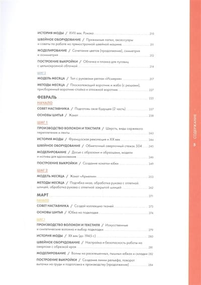 The book is easy and convenient to study on your own. You will track your progress in learning by going step by step through 9 practical blocks designed for a month. Each block contains: a theoretical section with advice and recommendations of experts, a basic model on the example of which you will comprehend the new material, a block of study of threads and fabrics, a section on the history of fashion, lessons on sewing sketch, style and design, a course of construction and modeling cutouts, the model of the month with a full layout in the form of a completed sewing notebook with all the necessary data and parameters. And finally a summary with test questions and exercises to summarize the month's work and evaluate your progress. You will see how quickly your knowledge, skills and abilities will grow and sewing will become a great pleasure. This book will help you realize your full creative potential!