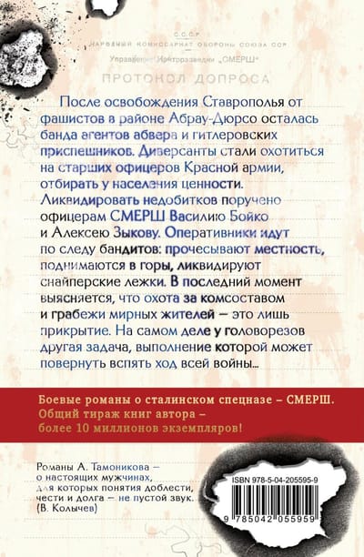 After the liberation of Stavropol from the fascists, a gang of Abwehr agents and Hitler's henchmen remained in the Abrau-Dyurso area. The saboteurs began hunting senior Red Army officers and taking valuables from the population. SMERSH officers Vasily Boyko and Alexey Zykov were tasked with eliminating the survivors. The operatives followed the bandits' trail: they combed the area, climbed the mountains, and eliminated sniper hideouts. At the last moment, it turns out that the hunt for the command staff and the robberies of civilians is just a cover. In fact, the thugs have another task, the fulfillment of which could turn the tide of the entire war...