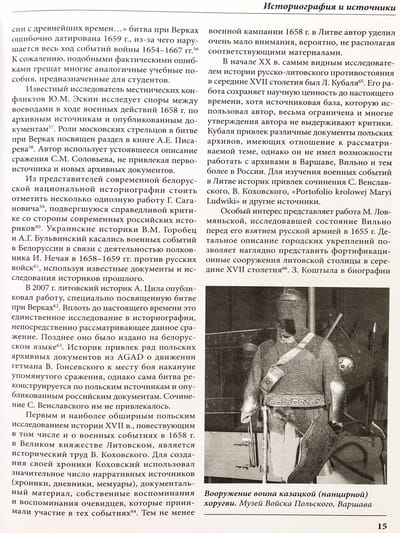 Despite the importance of this victory, this battle is one of the least studied in Russian military history. A separate chapter of the book is devoted to the fight against the rebellion of Ukrainian Cossacks I. Nechai in Belorussia, which significantly complicated the course of the military campaign of 1658. Until now, the military events in question have not been the subject of a special study in Russian historiography. The main part of the archival materials involved in the work has never been published before. Most of the documents on the composition, number and losses of the Russian army in the battles and campaigns of the Lithuanian campaign of 1658 are introduced into the scientific turnover for the first time.