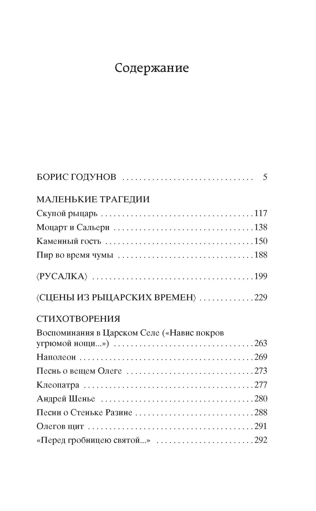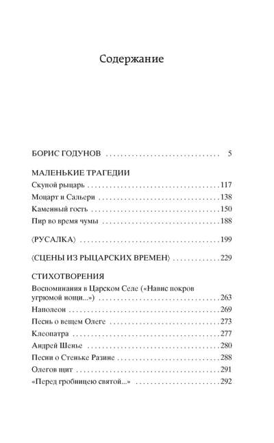 "Little Tragedies" and "Boris Godunov" - the peaks of Russian dramaturgy of the first half of the XIX century. In 1825, while in exile in Mikhailovsky, Pushkin wrote the tragedy "Boris Godunov". "The study of Shakespeare, Karamzin and our old chronicles gave me the idea to put in dramatic forms of one of the most dramatic epochs of modern history," - Pushkin wrote about the emergence of the idea of the plot relating to the era of the Troubles. Having completed work on the play, in which the main theme was the struggle for power and the Russian throne, the poet admitted in a letter to his friend P. A. Vyazemsky: "My tragedy is over; I read it aloud, alone, and beat my hands, and shouted, ay da Pushkin! ay da son of a bitch!". The cycle "Little Tragedies" was written in 1830 in Boldin, it is devoted to human passions - subjugating all thoughts and feelings. Each protagonist is obsessed with such a passion - whether it is the acquisition of treasure, love, creativity or thirst for immortality. And each of them is a voluntary slave to his passion, which is not enough to subordinate it to his personal existence, he wants to subordinate it to the whole world. The edition includes Pushkin's unfinished dramatic works - "Rusalka" and "Scenes from Knightly Times" - as well as selected poems.