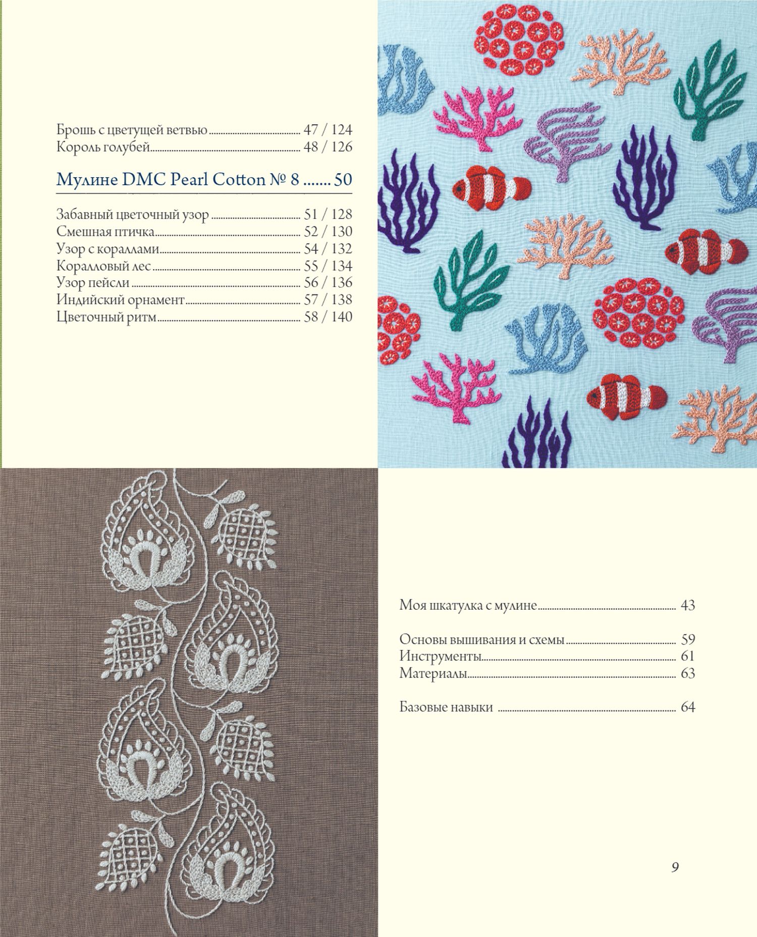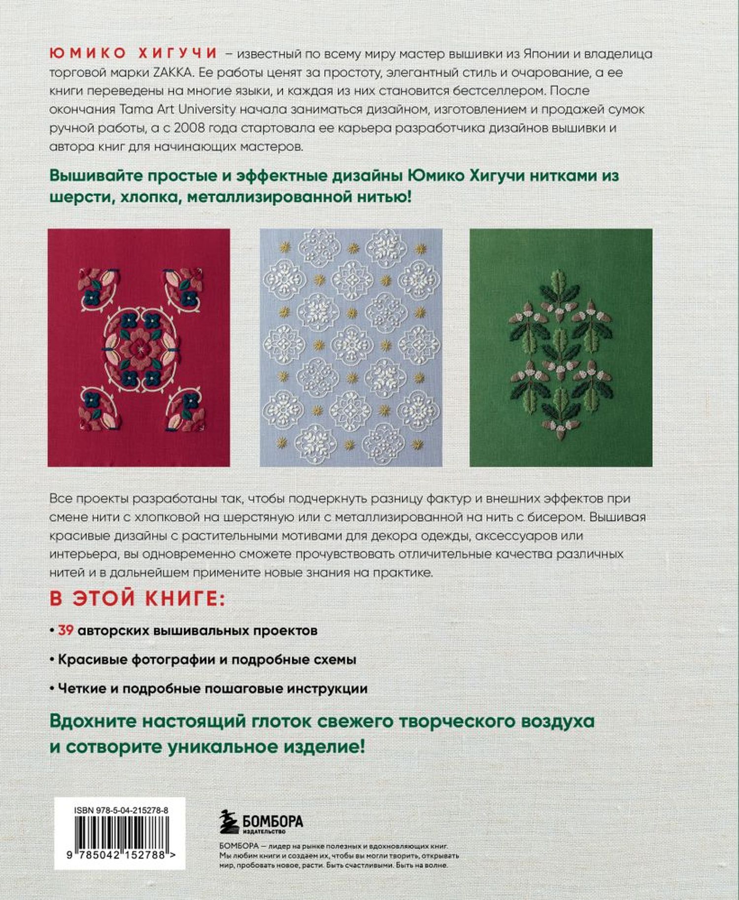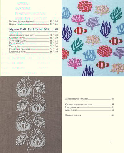 The uniqueness of this collection is also in the fact that all the motifs are made using different materials, and this play of textures and shades is the main intrigue of Higuchi's work! Her flowers, leaves and vines will bloom in your interior in the form of panels, beautiful and exquisite pillows, napkins and tablecloths. And you will receive incomparable pleasure from working under the guidance of a famous master!