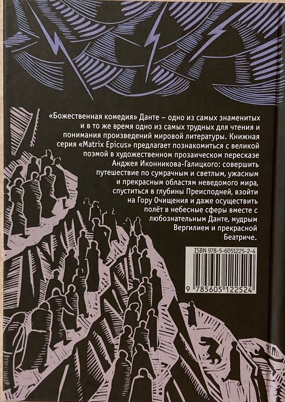 Dante's Divine Comedy is one of the most famous and at the same time one of the most difficult to read and understand works of world literature. The book series "Matrix Epicus" offers to get acquainted with the great poem in the artistic prose retelling of Andrzej Ikonnikov-Galicki: to travel through the dark and bright, terrible and beautiful regions of the unknown world, to descend into the depths of the Underworld, to ascend the Mountain of Purification and even to fly into the heavenly spheres together with the inquisitive Dante, the wise Virgil and the beautiful Beatrice.