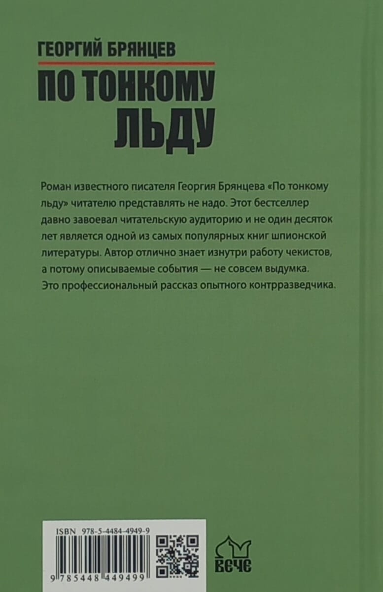 The novel "On Thin Ice" by the famous writer Georgy Bryantsev does not need to be presented. This bestseller has long won a readership and is one of the most popular books of spy literature. The author knows perfectly well from the inside of the work of the Chekists, and therefore the events described are not entirely fiction. This is a professional story of an experienced counterintelligence officer.