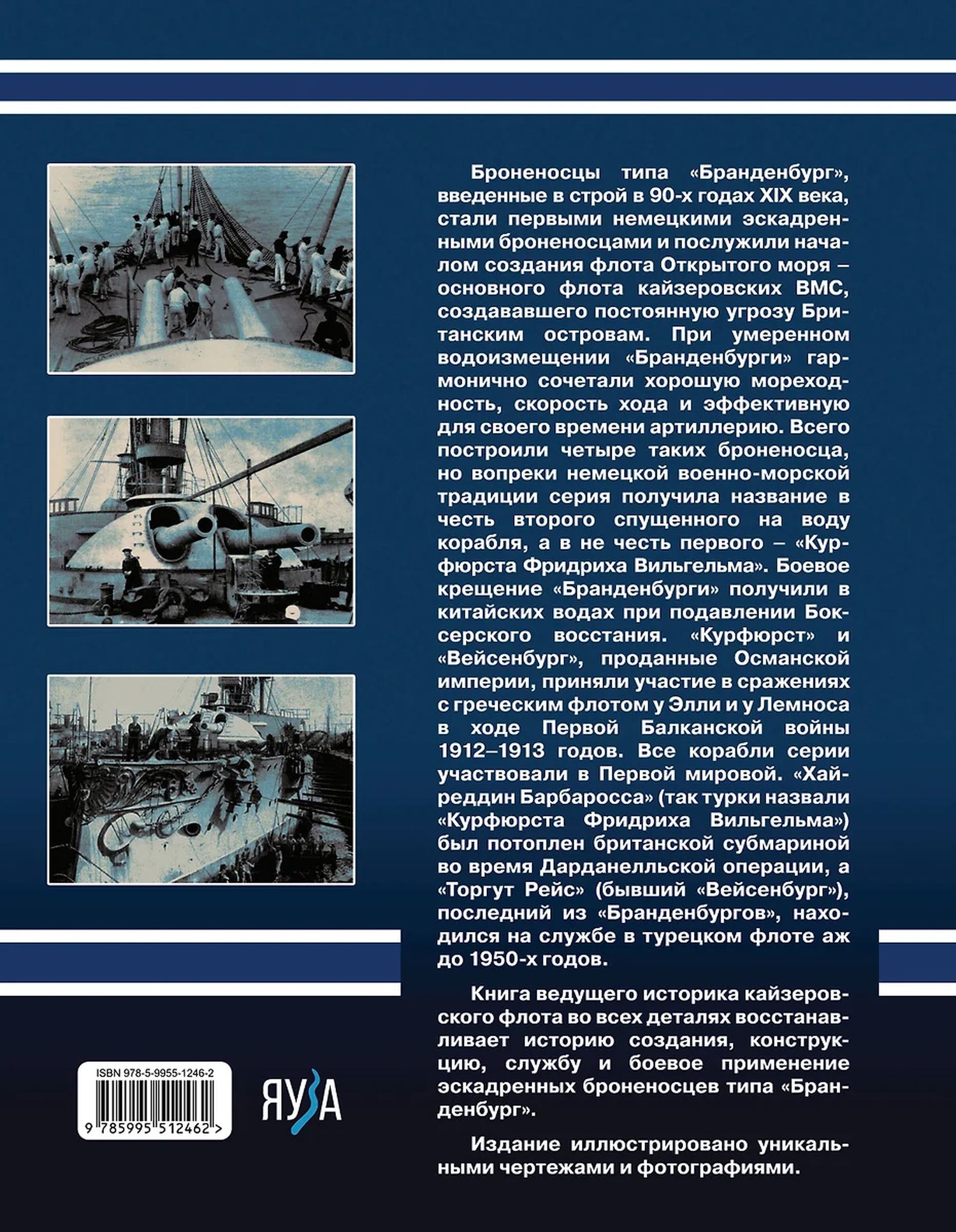The book by the leading historian of the Kaiser's navy reconstructs in detail the history of the creation, design, service and combat use of the squadron battleships of the Brandenburg class. The publication is illustrated with unique drawings and photographs.