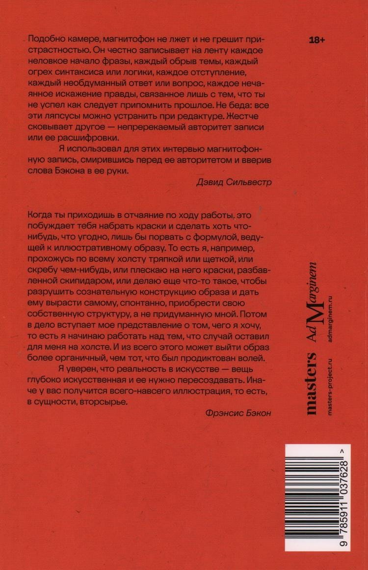 The eminent painter Francis Bacon found in David Sylvester, the British art historian and art critic, a remarkably perceptive confidant who was able to construct a relaxed exchange of remarks into the contemporary theory of pictorial art. This book of interviews has endured several reprints since its first publication in 1975 and has become iconic not only in the art community but also far beyond.