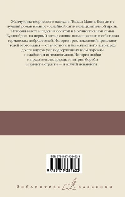 A gem of Thomas Mann's creative legacy. Almost the best novel in the genre of "family saga" in German-language prose. The story of the rise and fall of the rich and powerful Budenbrock family, at first glance, as if embodying the ideal of Germanic virtues. The story of three generations of representatives of this clan - from the powerful and ruthless patriarch to his grandchildren, already exposed to all the vices and weaknesses of intellectuals. The story of love and betrayal, enmity and intrigue, struggle and envy, tempestuous passion - and burning hatred ...