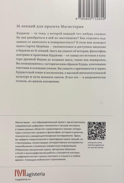 In sixteen lectures of this comprehensive religious studies course, Sergei Shcherbak provides a comprehensive description of the history, philosophy, doctrine, and psychopractices of Buddhism in an accessible and precise manner. This course begins with a brief excursion into the spiritual culture of Ancient India, citing examples from sacred texts and stories about the Ajivikas and Jains—the main "competitors" of early Buddhism—and extends to the later schools and Vajrayana teachings. The author seeks to reconstruct the historical core of the mythologized stories about the founder of Buddhism, Prince Gautama Shakyamuni, and consistently and thoroughly presents the main tenets of his teachings, drawing on key texts of the Buddhist canon. Special lectures are devoted to such interesting topics as Buddhist cosmology and the educational system.