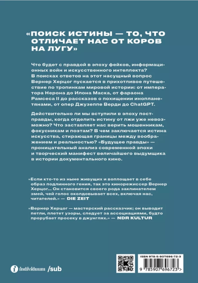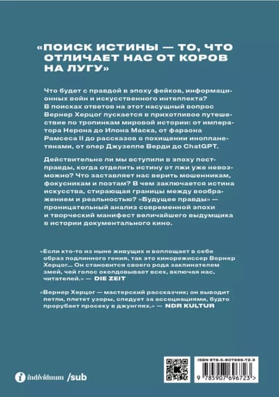What will happen to the truth in the era of fakes, information wars and artificial intelligence? In search of answers to this pressing question, Werner Herzog embarks on a bizarre journey through the paths of world history: from Emperor Nero to Elon Musk, from Pharaoh Ramesses II to stories of alien abduction, from Giuseppe Verdi's operas to ChatGPT. Have we really entered the age of post-truth, when it is impossible to separate the truth from the lie? What makes us believe crooks, magicians, and poets? What is the truth of art that blurs the boundaries between imagination and reality? The Future of Truth is an insightful analysis of the modern era and the creative manifesto of the greatest fictionalist in the history of documentary film.