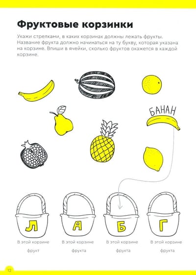 The notebook contains 92 tasks that train the ability to put syllables into words and graphomotor skills of writing letters. They introduce the capital type of letters. When many letters are already familiar and look quite friendly to the child, it is important to consolidate their images and the corresponding sounds in the head with the help of interesting tasks. As this happens, the child begins to confidently read by syllables. Now fast reading is only a matter of time! Learn with exciting tasks We consolidate the images of printed and capital letters with the help of interesting game mechanics. Everyone knows that after washing socks are always mixed up? We help mom put them in pairs, compare printed and capital letter images and remember them.