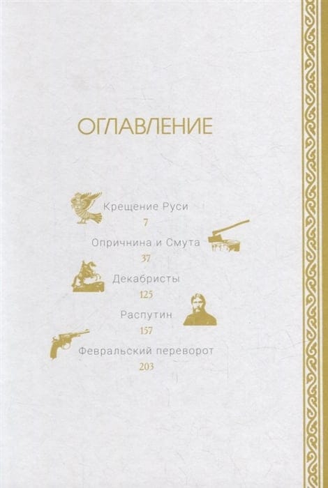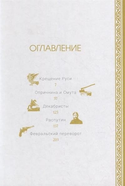 The five chapters of this book are five video programs from the cycle "Lessons of History". These are five reflections on heavy and dramatic episodes of our common past, which threatened to split and destroy the Russian statehood and our very national identity. The baptism of Russia into Orthodoxy, the oprichny regime of Ivan the Terrible and the fierce Time of Troubles, the Decembrists' uprising, the last years of the Romanovs' rule, overshadowed by the adventures of the brilliant villain Grigory Rasputin, the February coup of 1917 - these are the subjects that historian Sergei Minaev keeps in focus, urging readers to jointly find an answer to the eternal question: can we, the Russian people, to bring about change with little blood?....