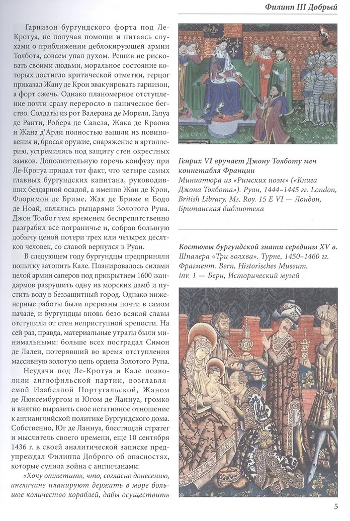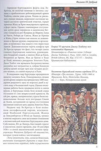 The book is devoted to the history of the development of the Burgundian state in the fourteenth and fifteenth centuries, mainly the military aspects, when the power in Burgundy belonged to the dukes of the French royal Valois dynasty. The first volume deals with the period of Philip II the Brave and Jean the Fearless, and the second with Philip III the Good. Using archival documents and the widest source base, as well as recent specialized studies, the book reinterprets the major battles of the Hundred Years' War (Poitiers, Agincourt, Cravan, Verneuil, the siege of Orleans, the siege of Compiègne, etc.), the results of peace negotiations and other political actions. Much attention is paid to the dynastic conflict between the Armagnacs and the Bourguignons. A broad retrospective of military and political conflicts that shook both the external borders of Burgundy and its internal foundations is given - the Flemish War, the Crusade to Bulgaria, the wars with the Principality of Liege, the Dutch War between the "cods" and "hooks", the conquest of Luxembourg, the uprisings in Bruges and Ghent.... The biographies of many famous and almost forgotten heroes, generals, politicians, priests, valiant knights, ordinary soldiers and commoners, men and women, are traced. From their fates, as from the bricks, and was built a powerful Burgundian state, almost brought France to its knees.