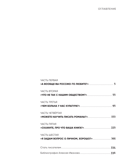 A multitude of sometimes awkward, unusual, challenging, and even provocative questions gave the author the opportunity to express himself and revealed a fascinating cross-section of the topics that concern our compatriot. Alexey Ivanov himself clearly defines the hierarchy of his interests and spheres of influence: "Where conversations about politics begin, conversations about culture immediately end. A writer is, after all, a social agent of culture, not politics."