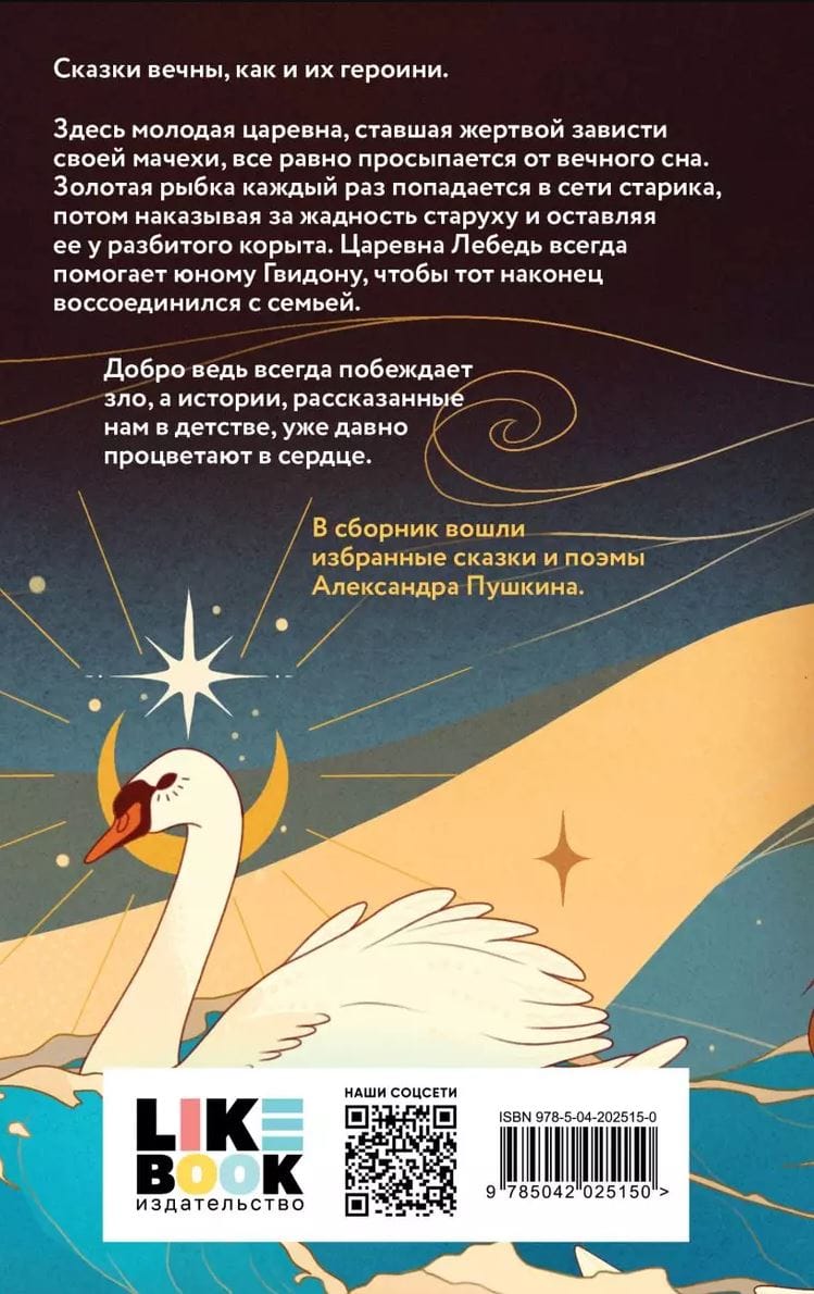 In addition to fairy tales, the book also contains the most famous poems by Pushkin, which will take you to the picturesque slopes of the Caucasus Mountains, under the vaults of the Bakhchisarai Palace and on the banks of the raging Neva. .