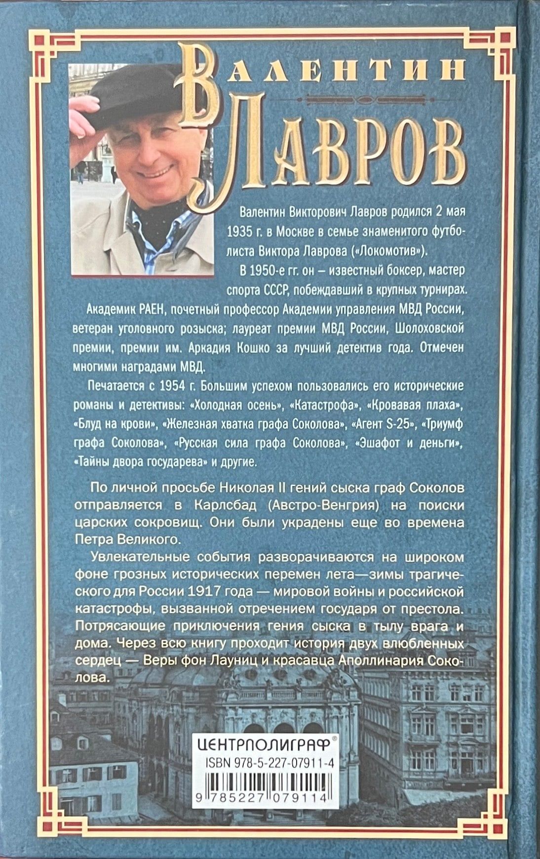 1917. At the request of Nicholas II, Count Sokolov goes to Carlsbad (Austria-Hungary) to search for the Tsar's treasures. They were stolen back in the days of Peter the Great. Fascinating events unfold against a broad background of formidable historical events - the world war and the Russian disaster caused by the abdication of the sovereign.
