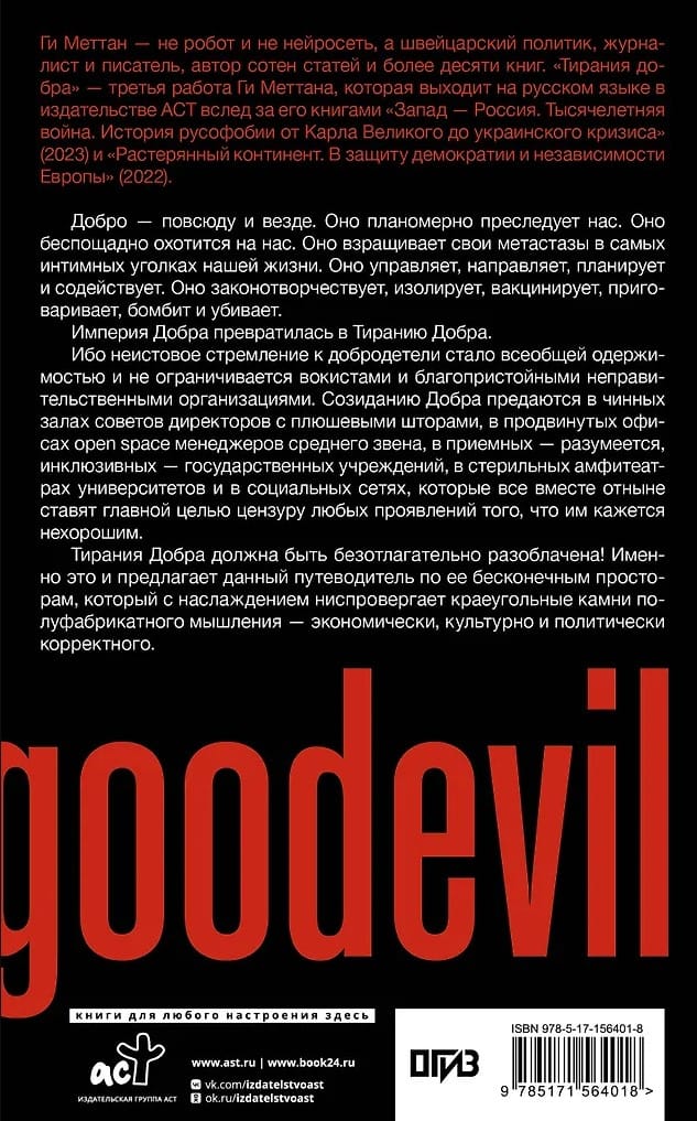 Goodness is everywhere and omnipresent. It systematically pursues us. It mercilessly hunts us. It metastasizes in the most intimate corners of our lives. It controls, directs, plans, and facilitates. It legislates, isolates, vaccinates, condemns,