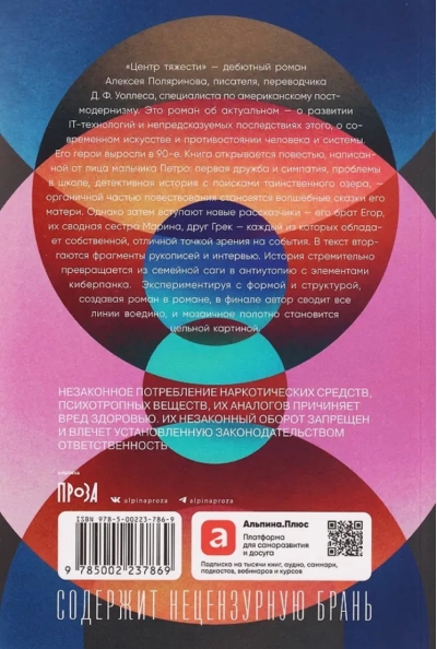 The debut novel by Alexey Polyarinov, a writer, translator of D.F. Wallace, and a specialist in American postmodernism, is a novel about current events—the development of IT technologies and their unpredictable consequences, contemporary art, and the confrontation between man and the system. Its characters grew up in the 1990s. The book opens with a story told from the perspective of a boy named Petro: his first friendship and affection, problems at school, a detective story involving a search for a mysterious lake—his mother's fairy tales become an integral part of the narrative. However, new narrators then emerge—his brother Yegor, their half-sister Marina, and their friend Grek—each with their own distinct perspective on the events. Fragments of manuscripts and interviews intersperse the text. The story quickly transforms from a family saga into a dystopia with elements of cyberpunk.