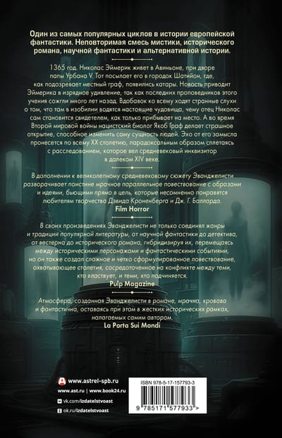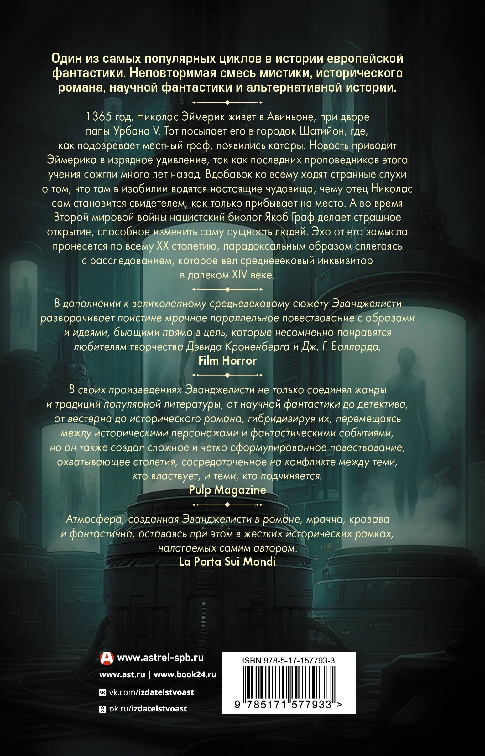 Nicolas Eymeric lives in Avignon, at the court of Pope Urban V. He sends him to the town of Chatillon, where, as the local count suspects, the Cathars have appeared. The news surprises Eymeric quite a bit, since the last preachers of this teaching were burned many years ago. In addition to everything, there are strange rumors that real monsters live there in abundance, which Father Nicholas himself witnesses as soon as he arrives at the place. And during World War II, Nazi biologist Jacob Graf makes a terrible discovery that can change the very essence of people. The echo of his plan will sweep throughout the 20th century, paradoxically intertwining with the investigation conducted by a medieval inquisitor in the distant 14th century.