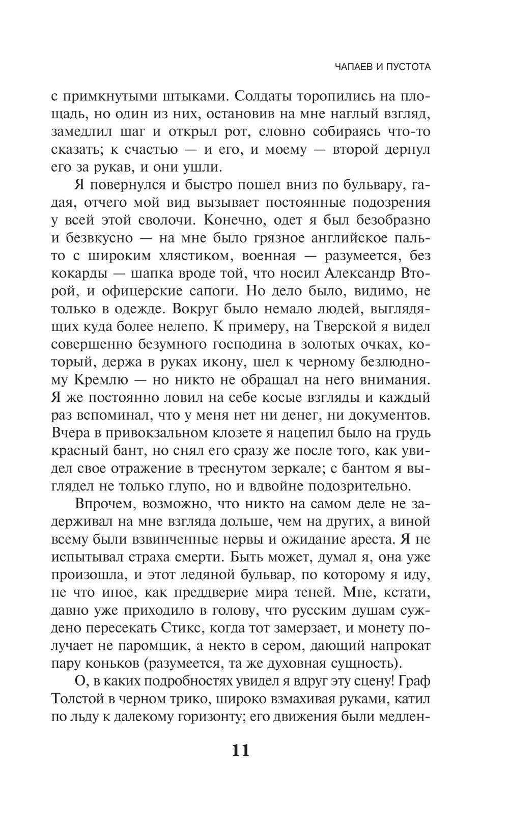 The author himself characterizes the novel "Chapaev and Emptiness" as follows: "This is the first work in world literature, the action of which takes place in absolute emptiness." In fact, it takes place in 1919 in Chapaev's division, in which the main character, the decadent poet Pyotr Emptiness, serves as a commissar. And also in our days. And also, as always with Pelevin, in the virtual space, where the main character meets Kawabata, Schwarzenegger, "simply Maria"...