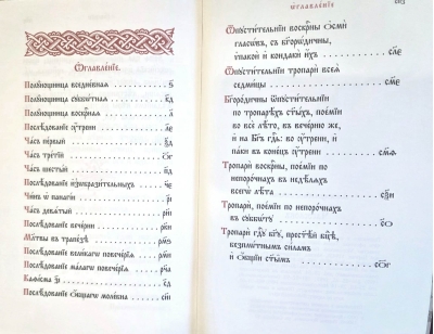 This book corresponds to the traditional small-format Book of Hours, published by the Publishing House for many years, being an enlarged copy. It features a hardcover binding, large typeface, high-quality offset paper, and two-color printing. This edition is convenient for both those with poor eyesight and those who simply appreciate large print, especially useful in low-light conditions.