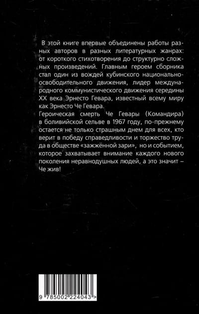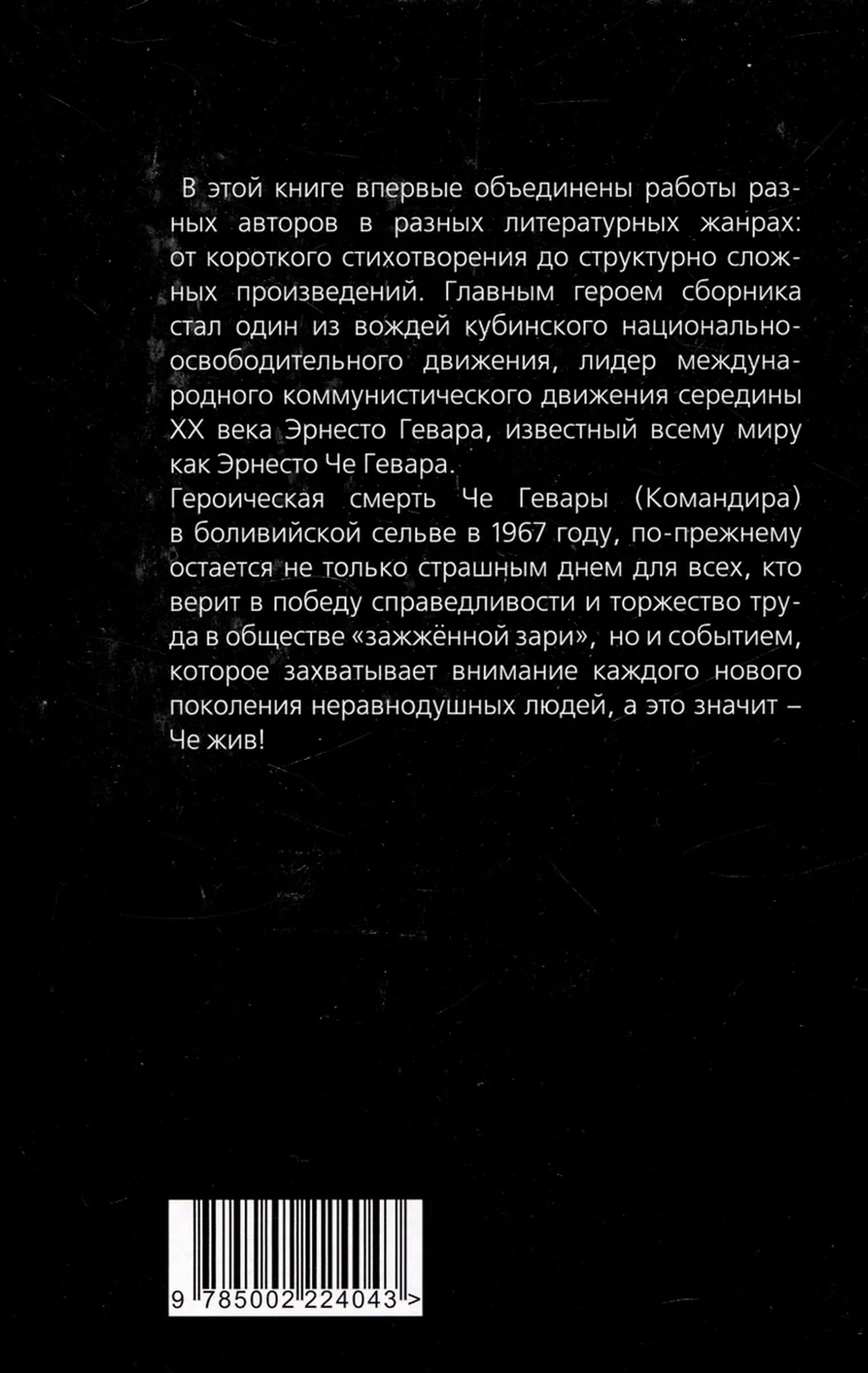 This book brings together for the first time works by various authors in various literary genres, from short poems to structurally complex works. The collection's protagonist is Ernesto Guevara, one of the leaders of the Cuban national liberation movement and the leader of the international communist movement of the mid-20th century, known throughout the world as Ernesto Che Guevara. The heroic death of Che Guevara (the Commander) in the Bolivian jungle in 1967 remains not only a terrible day for all who believe in the victory of justice and the triumph of labor in the society of the "lit dawn," but also an event that captures the attention of each new generation of caring people, meaning—Che lives!