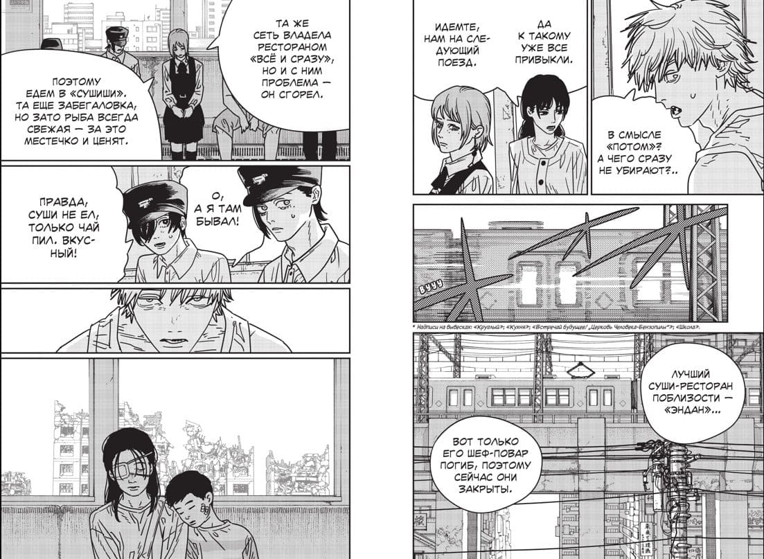 After fighting his way past security, Asa and Glada rescue Denji from the Tokyo Demon Containment Center. But Chainsaw Man's misadventures don't end there: the young man discovers that Nayuta has vanished without a trace during his absence! Denji intends to search for his charge, but first decides to recuperate in the most mundane way possible—a proper meal. Who knew that a simple lunch at a sushi restaurant would be the beginning of a new nightmare?