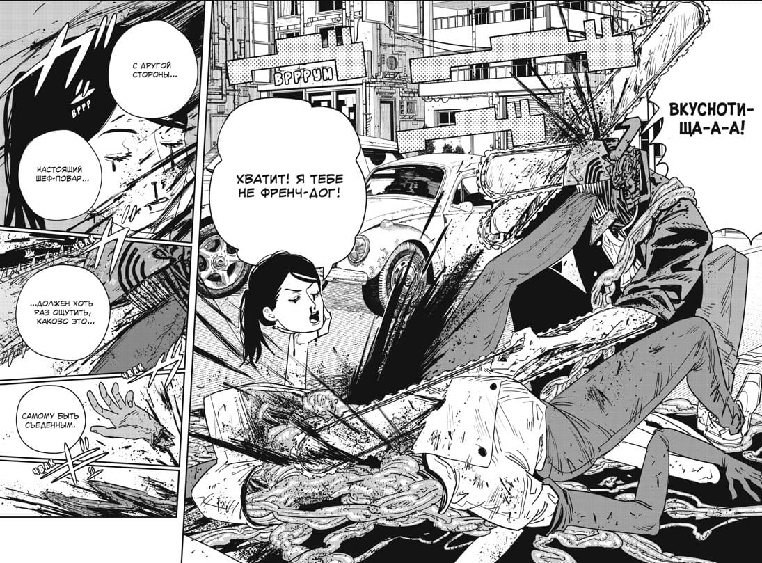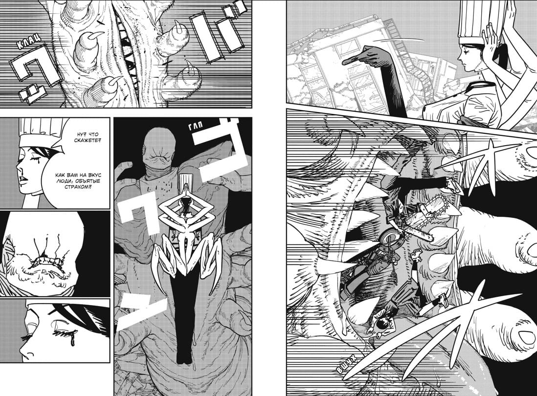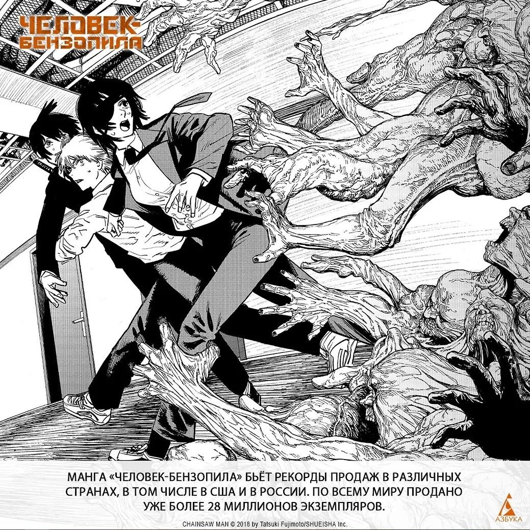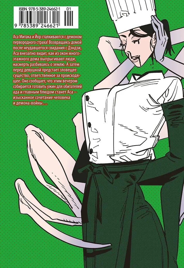 Asa Mitaka and Yor encounter a demon of primal fear! Returning home after a failed date with Denji, Asa suddenly sees people jumping out of the windows of a multi-story building, falling to their deaths on the ground. Then, the sinister being responsible for this appears before her. It announces that it will be preparing dinner for the denizens of hell that evening, and the main course will be Asa—an exquisite combination of human and war demon...