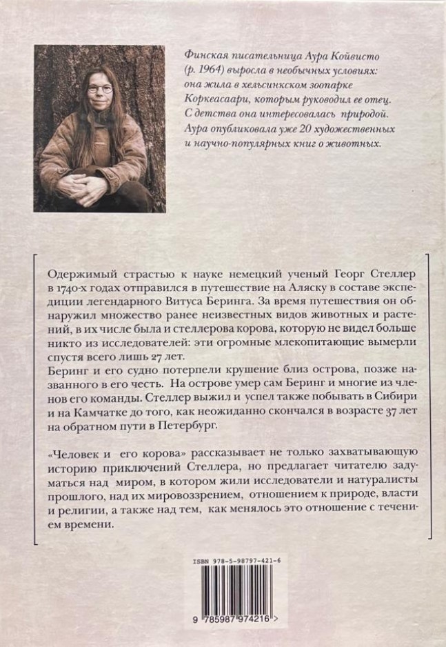 The animal discovered by Steller, the Steller's cow, disappeared from the face of the earth in just 27 years. "Steller's cow died, and the world became a slightly lonelier place again." This phrase belongs to marine zoologist Victor B. Schaeffer, and it's hard to describe extinction better. Human responsibility, our role, and our place among our fellow planetary species—these are the themes Koivisto explores in his book.