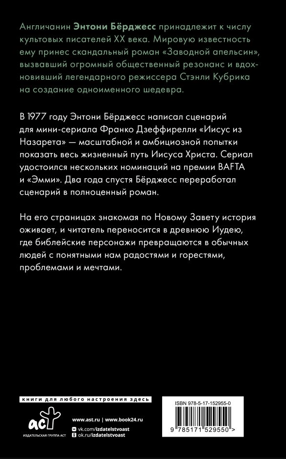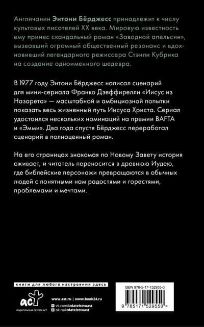 In 1977, Anthony Burgess wrote the script for Franco Zeffirelli’s miniseries Jesus of Nazareth, a large-scale and ambitious attempt to show the life of Jesus Christ. The series received several nominations for BAFTA and Emmy Awards. Two years later, Burgess reworked the script into a full-fledged novel.
