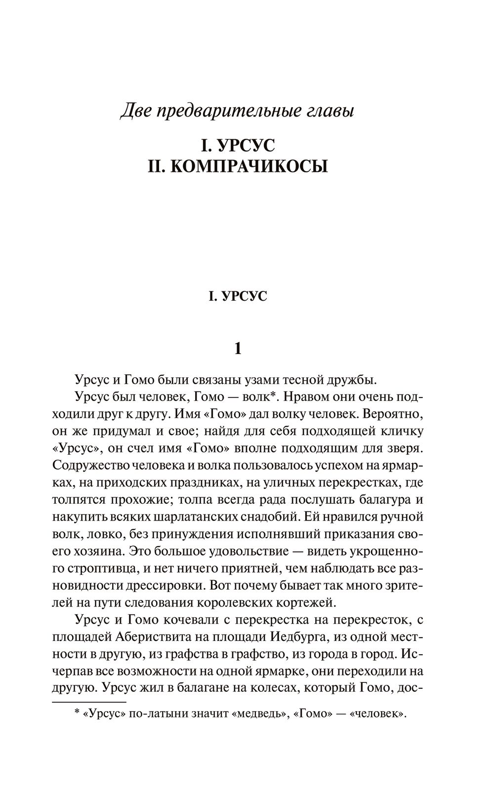 In the center of the narration, Guinplen, kidnapped in early childhood by bandits who disfigured his face beyond recognition. Fate presented him with many trials, but his soul did not cripple - having overcome the difficult path from a fair actor to a lord and member of parliament, he was able to remain an honest and noble man. . .