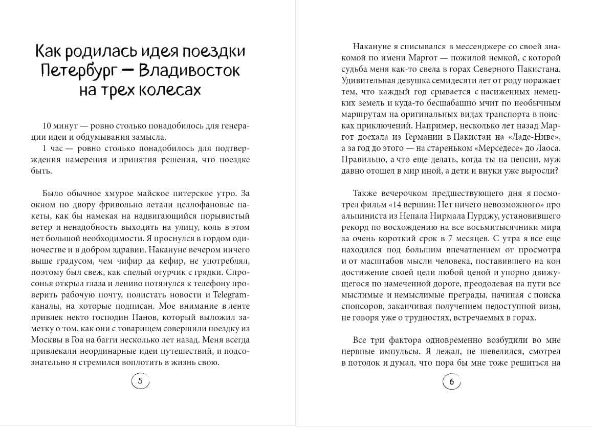 In the book, Anton proves that even the most incredible ideas can be brought to life, you just have to start. The idea of traveling on a three-wheeled moped from St. Petersburg to Vladivostok came up spontaneously. Inspire sponsors, come up with a nickname for the charming moped (how can it even get there?) — and off we go!