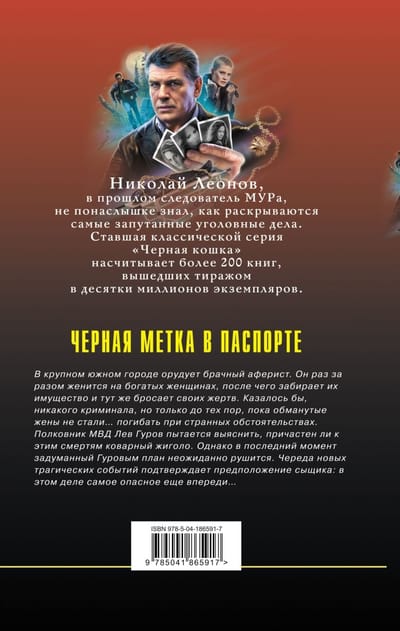 In a large southern city, a marriage scammer is on the loose. He repeatedly marries rich women, then takes their property and immediately abandons his victims. It would seem that no crime, but only until the deceived wives did not become... die under strange circumstances. Interior Ministry Colonel Lev Gurov is trying to find out whether the insidious gigolo is involved in these deaths. However, at the last moment the plan conceived by Gurov suddenly collapses. A series of new tragic events confirms the assumption of the detective: in this case, the most dangerous still ahead...Nikolai Leonov, formerly an investigator of the MUR, knew firsthand how to solve the most intricate criminal cases. Therefore, each of his books - a true exciting story with unpredictable intrigue and an unexpected ending. The protagonist of these books, Colonel Lev Gurov - a detective of high class, moreover, with a lot of positive human qualities. He is respected by friends, feared by enemies and loved by women. He - a real domestic superman. Novels about Leo Gurov for forty years invariably attract fans of domestic detective. Became a classic series of "Black Cat" has more than 200 books, published in tens of millions of copies.