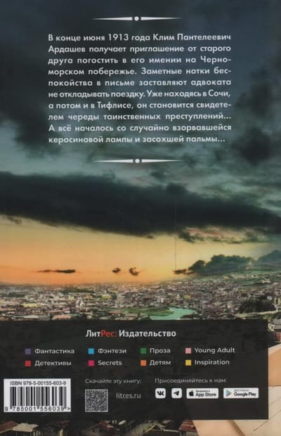 In late June 1913, Klim Panteleevich Ardashev received an invitation from an old friend to visit his estate on the Black Sea coast. The noticeable hints of anxiety in the letter compelled the lawyer to rush the trip. While in Sochi, and then Tiflis, he witnessed a series of mysterious crimes... And it all began with an accidentally exploding kerosene lamp and a withered palm tree...