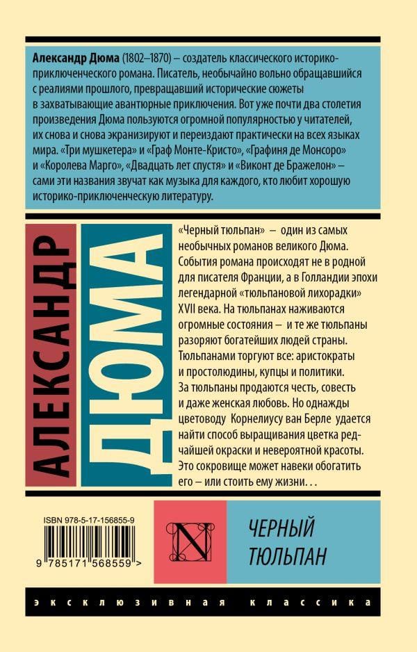 "Black Tulip" - one of the most unusual novels of the great Dumas. The events of the novel take place not in the writer's native France, and in Holland epoch of the legendary "tulip fever" XVII century. On tulips profited huge fortunes, - and the same tulips ruin the richest people in the country. Everyone trades in tulips: aristocrats and commoners, merchants and politicians. Honor, conscience and even a woman's love are sold for tulips. But one day the florist Cornelius van Berle manages to find a way to grow a flower of the rarest color and incredible beauty. This treasure could enrich him forever - or cost him his life....