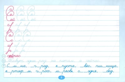 "Penmanship and Vocabulary Words" is a teaching aid aimed at forming calligraphic skill in junior schoolchildren. It is linked to the lesson topics, connected with vocabulary words. The basis of penmanship is made up of strokes (each page starts with them). They are aimed at practicing the connections of letters, which further form the basis of the vocabulary word(s). Work with the vocabulary word is conducted according to the methodology of teaching Russian language in primary grades (lesson topic). At the bottom of the page is given a proverb in which the word under study is included. The pale color should be circled (stroke and proverbs).