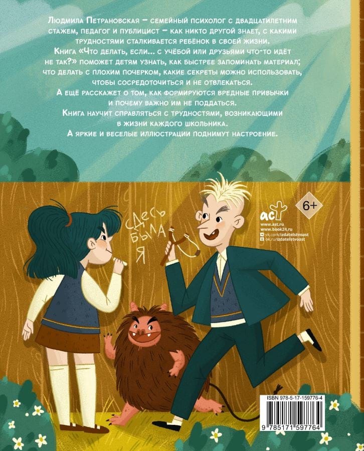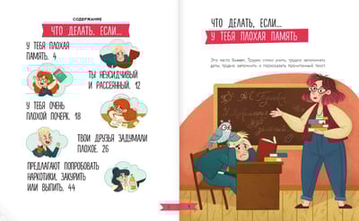 The book “What to do if... something goes wrong with your studies and friends?” will help children learn how to memorize material faster, what to do with bad handwriting, what secrets can be used to concentrate and not get distracted. It will also tell you how bad habits are formed and why it is important not to give in to them. The book will teach you how to cope with the difficulties that arise in the life of every schoolchild. And the bright and cheerful illustrations will lift your spirits.