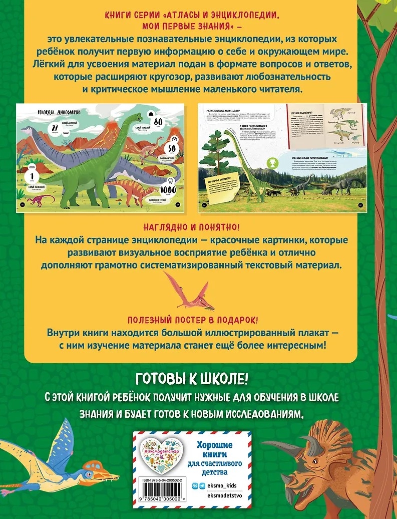 A question-and-answer encyclopedia created specifically for preschoolers. Instead of long, scientific articles, there are visual, easy-to-understand, and engaging stories about dinosaurs, plus a large poster included. The amazing records of ancient dinosaurs, their physical characteristics, how they lived, and what they ate—everything a little inquisitive mind wants to know and loves to ask about!