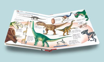 Illustrated Encyclopedia "What? Why? Why? The World of Dinosaurs", released in the series "For Whyteachers" of the publishing house "Omega", will tell about the countless and great diversity of the wonderful world of "terrible lizards" who lived on our planet many millions of years ago. The publication can be used as an original textbook for children of primary school age, which will certainly interest the child and win the heart of an adult, will help to turn the process of gaining new knowledge in a very interesting and exciting activity. Bright and attractive oversized book is printed on high quality laminated cardboard of high strength with rounded edges of pages. Each book spread of the encyclopedia is saturated with a lot of interesting information, colorfully and entertainingly describing the life of dinosaurs in all periods of the Mesozoic era. Carefully drawn pictures can be viewed for hours, noticing and discovering new amazing facts, and numerous windows and flaps with various additional information will not only give the necessary explanations and comprehensive answers to the child's questions, but also turn reading into an exciting game, develop attention and curiosity. The book will be a wonderful gift for young "whiz kids" and a valuable addition to the home library.