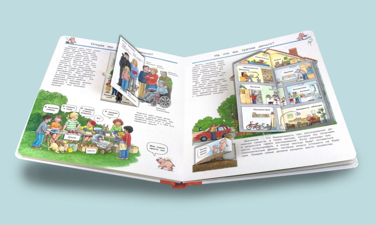 The illustrated encyclopedia “What? Why? For what? Our money and economics”, published in the “For the Pochemuchek” series by the Omega publishing house, will tell your child about the basics of economics and the importance of money in people’s lives. The publication can be used as an original teaching aid for children of primary school age, which will certainly interest the child and win the heart of an adult, and will help turn the process of acquiring new knowledge into a very interesting and exciting activity. A bright and attractive book of an enlarged format is printed on high-quality laminated cardboard of increased strength with rounded page edges. Each book spread of the encyclopedia is filled with a lot of interesting information, colorfully and entertainingly, in a playful way, telling about the production, distribution, exchange and consumption of goods and services.