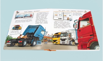 Each page of the encyclopedia is packed with fascinating information, vividly and engagingly describing various types of trucks and powerful construction equipment.