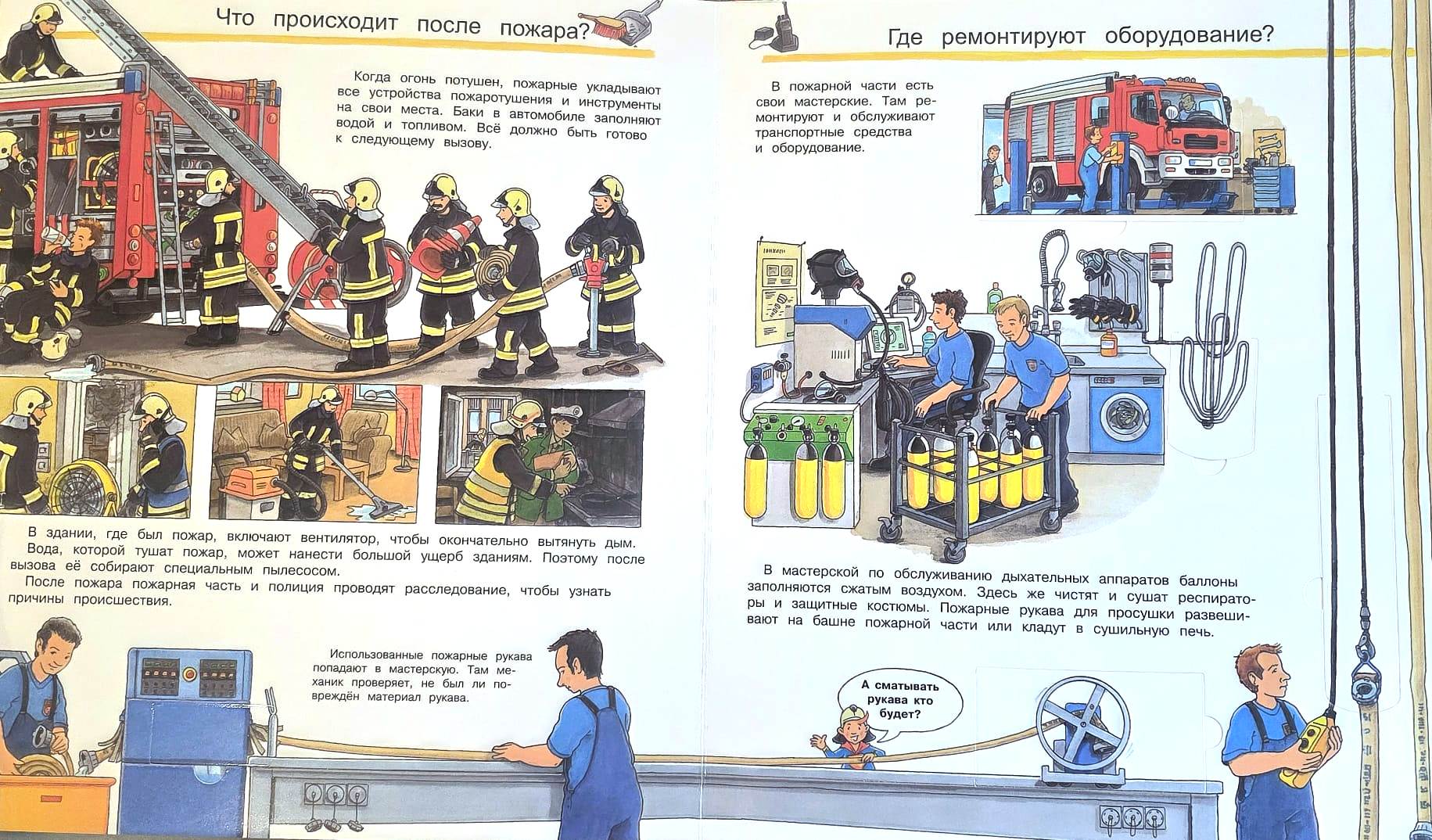 The carefully drawn pictures can be studied for hours, noticing and discovering new, little-known, and surprising facts about the essential and important profession of firefighters. Numerous windows and valves with various additional information will not only provide necessary explanations and comprehensive answers to children's questions, but also turn reading into an exciting game, developing attention and curiosity.