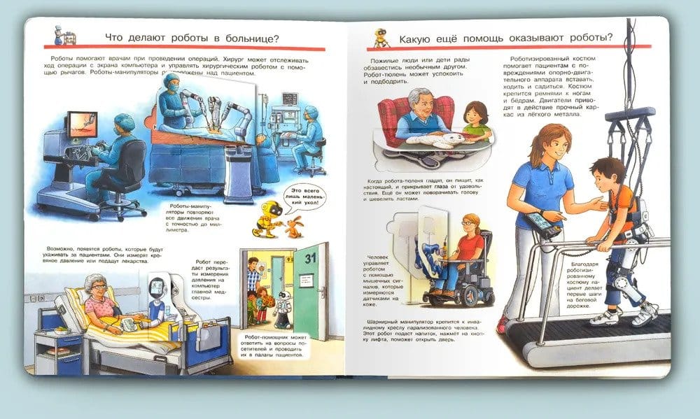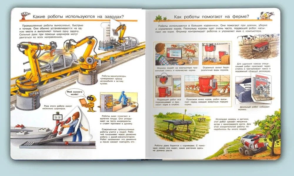 Illustrated Encyclopedia "What? Why? Why? All about robots" will tell you a lot of interesting things about the world of robotics. Each page of the encyclopedia is full of interesting information about modern robots, their design and application. Little readers will learn what robots have already been invented and how they help people in everyday life, why you need and how robot rescuers work, what "study" robot researchers, and much more. The bright and attractive oversized book is printed on high quality laminated cardboard with rounded page edges. Carefully drawn pictures can be viewed for hours, and numerous windows and flaps with various additional information will not only give the necessary explanations and comprehensive answers to the child's questions, but also turn reading into an exciting game, develop attention and curiosity. The book will be a wonderful gift for young "whiz kids" and a valuable addition to the home library.