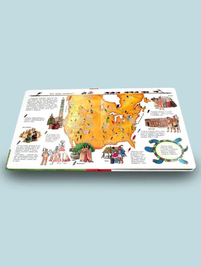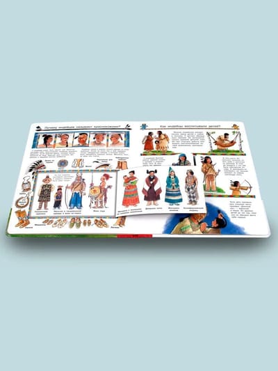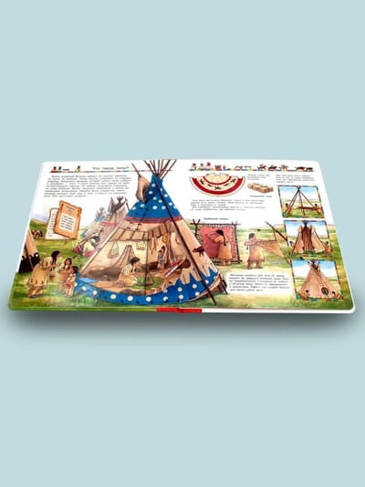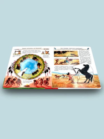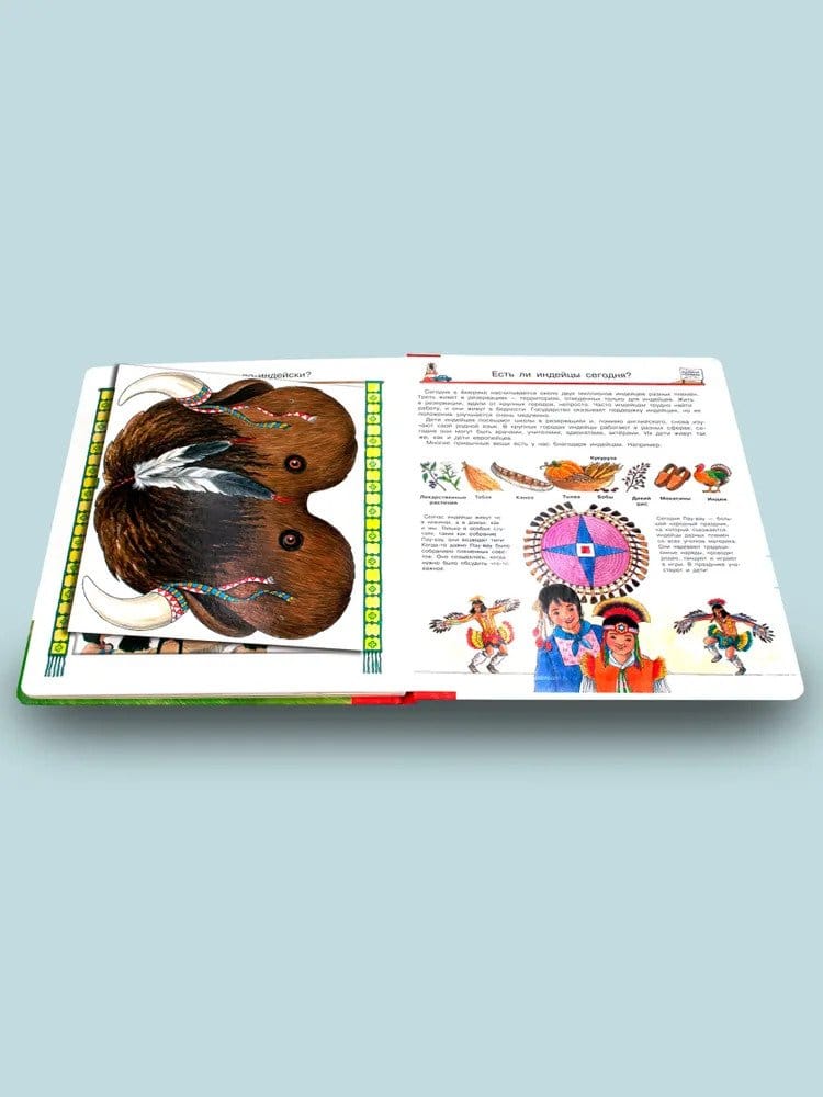 Encyclopedia "What? Why? Why? All about the Indians" will tell little wanna-be-knows about the indigenous inhabitants of America, their history and customs. The publication contains many amazing facts about how different tribes of Indians lived and how their traditions differed, what Indians did during the year, how they hunted and what their holidays were. The encyclopedia will certainly interest not only a child, but also an adult, will help to turn the process of gaining new knowledge into an interesting activity. The oversized book is printed on high quality laminated cardboard of high strength with rounded edges of pages. Each page of the encyclopedia is filled with a lot of fascinating information describing the life and life of Indians. Carefully drawn pictures can be viewed for hours, noticing and discovering new amazing details, and numerous windows and flaps with additional information will not only give the necessary explanations, but also turn reading into an exciting game, develop attention and curiosity. The book will be a wonderful gift and a valuable addition to your home library.