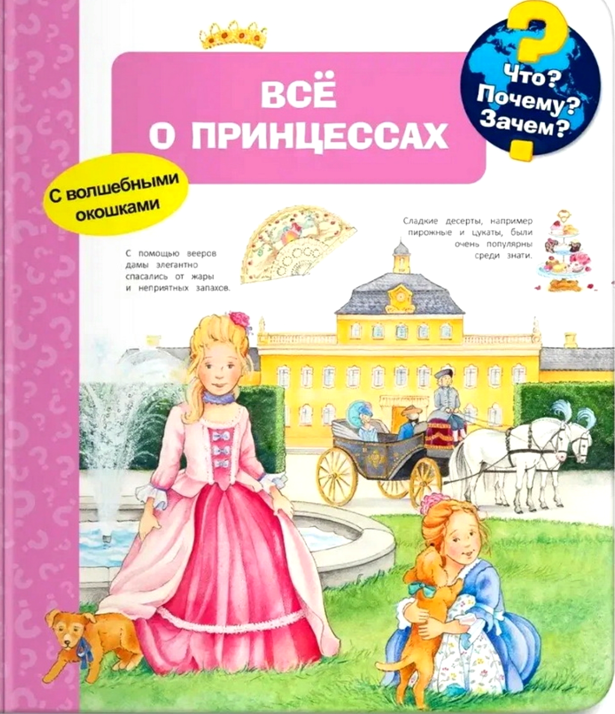 The illustrated encyclopedia "What? Why? For What? All About Princesses," published in the "For Why-Nothings" series by Omega Publishing, tells the story of the lives of real princesses. This publication can be used as an educational resource for primary school children, sure to captivate them and delight adults alike. This bright and attractive, oversized book is printed on high-quality, laminated, heavy-duty cardboard with rounded page edges. Each page of the encyclopedia is filled with a wealth of interesting facts, vividly and engagingly describing the lives of princesses.